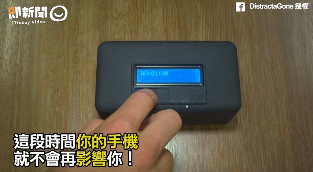 荷蘭創意團隊「DistractaGone」日前在臉書宣傳產品「手機盒子鎖」,影片內容介紹,只要將手機放入盒內,蓋上蓋子並設定時間,這段時間你的手機將不會再影響你,盒內約可容納4支手機,只有設定時間到時,才能打開盒子。