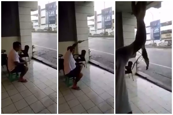 臉書粉絲專頁「爆料公社」分享一段短片,日前受梅姬颱風影響,台南地區大雨滂沱,有住戶突發奇想,拿起板凳坐在騎樓下釣蝦。只見魚線被拋到積水的馬路上,過沒多久,他起身使勁地往後拉,一隻活跳跳的蝦子就這樣子上鉤了。雖然影片的真實度低,但網友抱持著「苦中作樂」的正面想法,笑一笑就好。