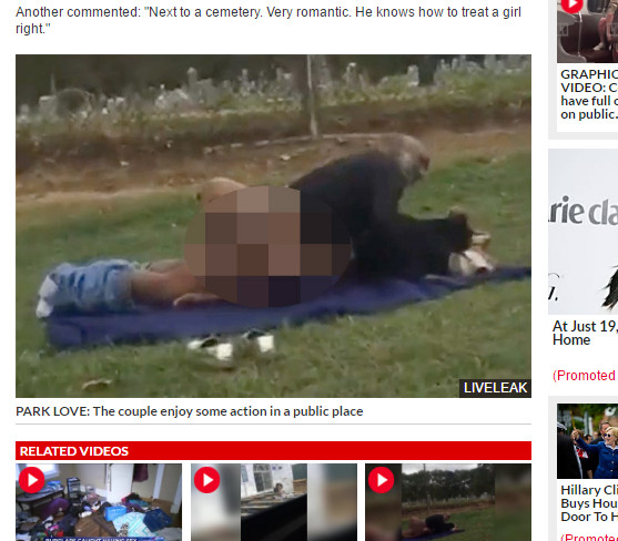 根據《每日星報》報導,一名男子被拍到將褲子脫到腳踝,與女伴在草皮上「黑皮」,沒想到闖入不速之客越開越近,還大聲叫喊「動快點,往左邊一點撞,快點繼續阿,不要停,繼續撞下去」,讓他不爽幹嘛靠那麼近,影片也就此結束。
