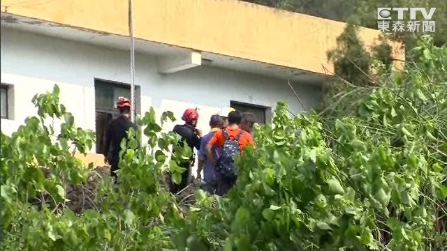 這棟2層樓的民宅,28日上午10點多傳出遭土石掩埋,當時施姓屋主在房間睡覺,兒子照顧中風的母親,屋內3人都受困,由於土石從後門往前沖到1樓,將房子滑落20公尺,1樓整個遭土石塞滿,只露出2樓屋頂,加上豪雨,土石非常鬆軟,搜救工作一度暫停,今天上午在家屬同意下,出動重機具破壞房子,再用人力開挖。