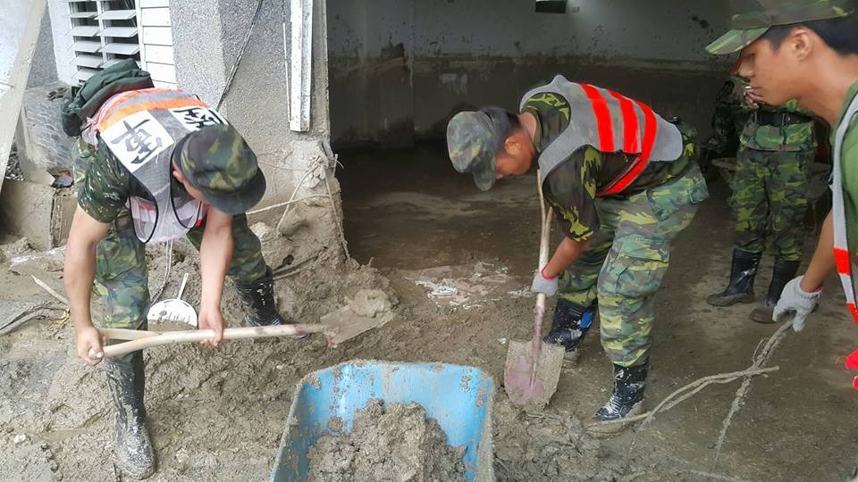 ▲陸軍東指部持續派遣100名兵力,協助台東紅葉村淤泥清除工作。(圖/國防部提供)
