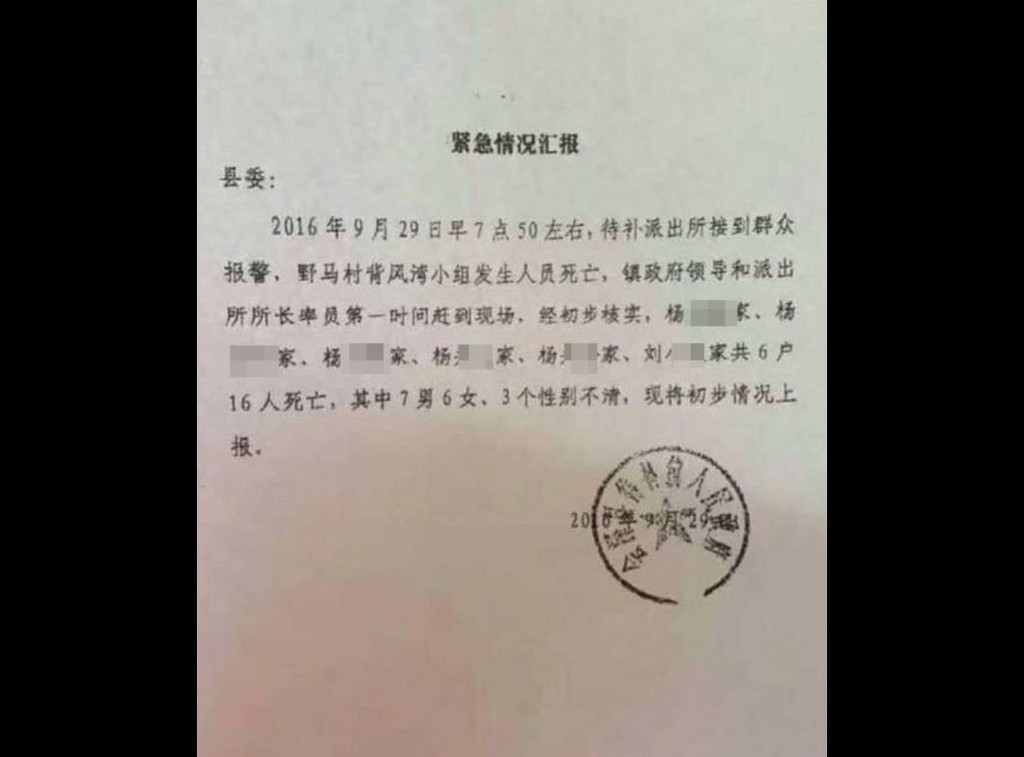 ▲待補鎮發生16人集體死亡的離奇事件,初步調查判定為他殺。(圖/翻攝自《澎湃新聞網》)