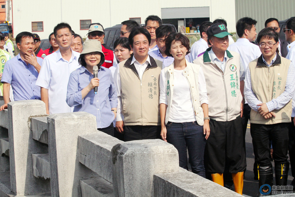 梅姬颱風肆虐南台灣,總統蔡英文29日在台南市長賴清德的陪同下,至台南市安南區視察六塊寮排水整治進度,蔡英文當場承諾,中央會支援台南水利治理工程所需要的費用,讓台南市不再受淹水之苦。