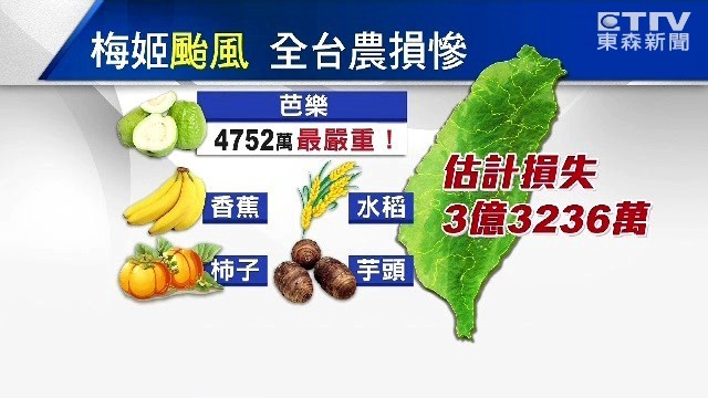 ▲ 梅姬颱風威力強,全台農損超過3億元。