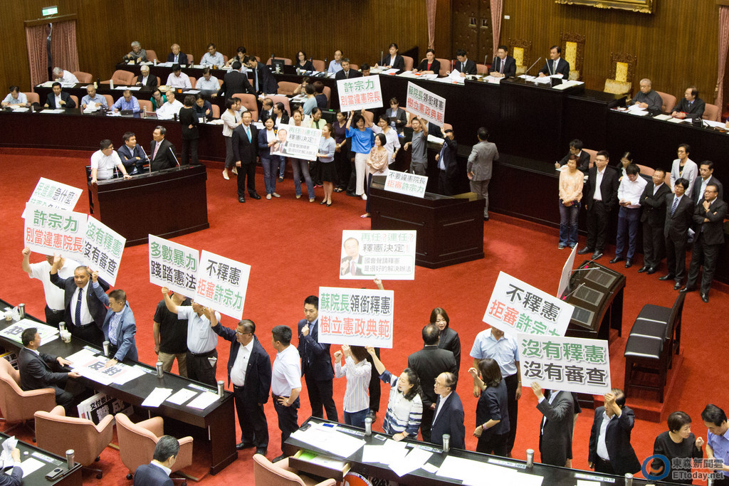 在表決期間,國民黨立委僅全面站在議場前,並呼喊口號「護航御用大法官」、手持標語表達抗議,並無激烈行動。而民進黨團也順利以優勢人力進行表決,通過下週開始審查人事案,預計在10/6、12兩天舉辦公聽會,10/13審查正副院長被提名人、10/17、19、20針對大法官被提名人進行實質審查,並將在10/25行使人事同意權投票。
