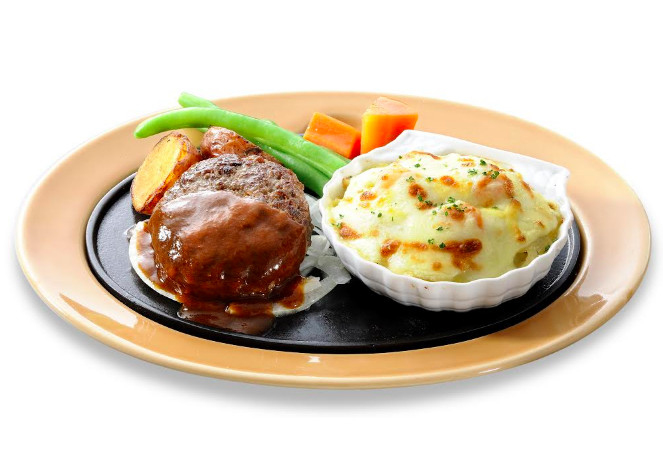 ▲樂雅樂選用澳洲和牛結合盤克夏黑豚肉漢堡排,搭配焗烤通心麵。