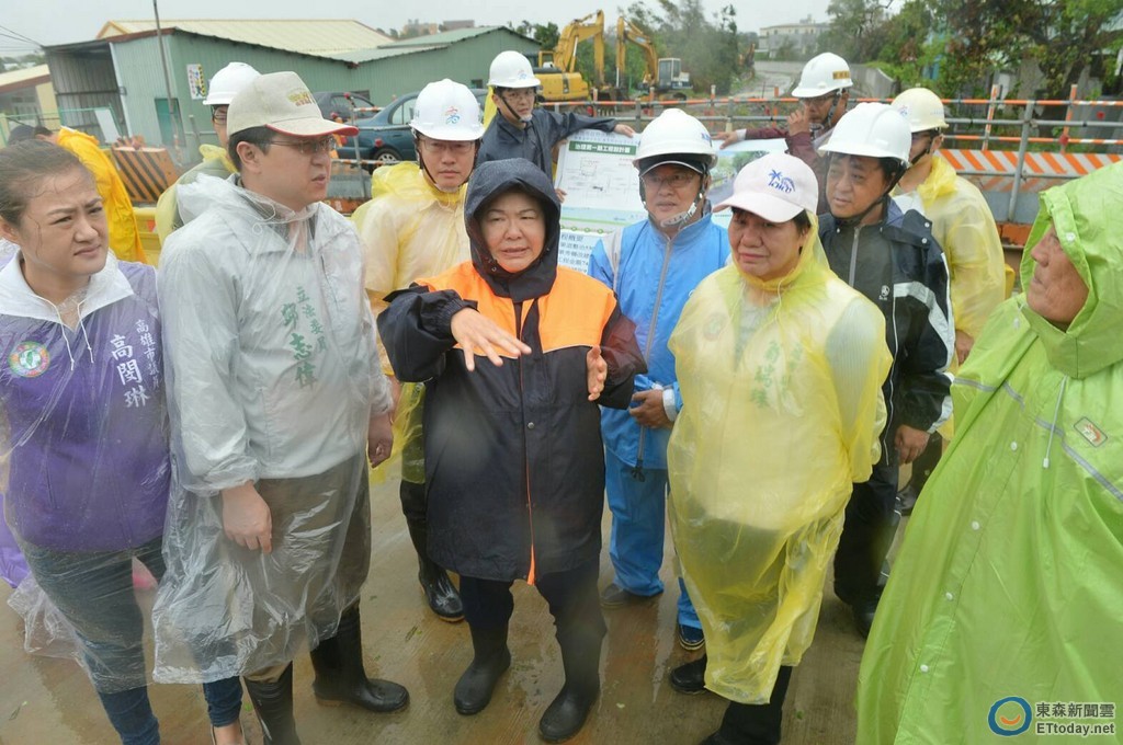 ▼勘災右手受傷,陳菊坦承以後颱風假做決定會很艱難。