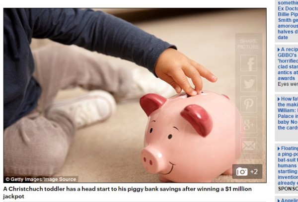 真的是超令人羨慕的!每個人都希望自己可以中樂透大獎,成為千萬、億萬富翁,有些人的偏財運就是好到令人羨慕又忌妒。紐西蘭一名3歲男童,小小年紀竟然中了100萬紐幣(約新台幣2276萬元),他成了當地史上最年輕的樂透得主。