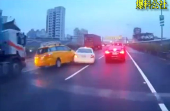 有目擊駕駛將行車紀錄器影片分享至臉書「爆料公社」社團,傍晚下班時間,高速公路上車流量大,快到瑞隆交流道口時前方車輛回堵,一輛小轎車先打方向燈後切到內側車道;白色轎車也想跟進,但前方明明沒車,他卻疑似猶豫不決,龜速行駛。後方計程車禮讓白車先行,但更後面的大貨車煞車不及,先追撞計程車,計程車再撞上白車車頭,使得白色轎車被撞到打橫停在路中。