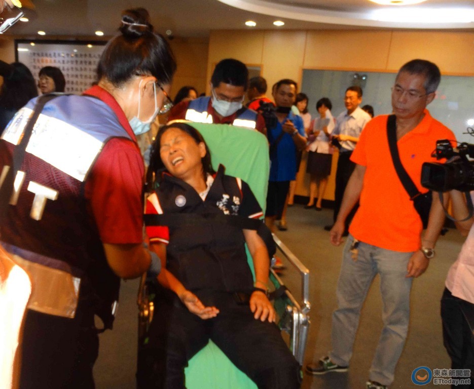 ▲國民黨籍市議員王家貞,表情痛苦被送醫就治。(圖/記者林悅攝)