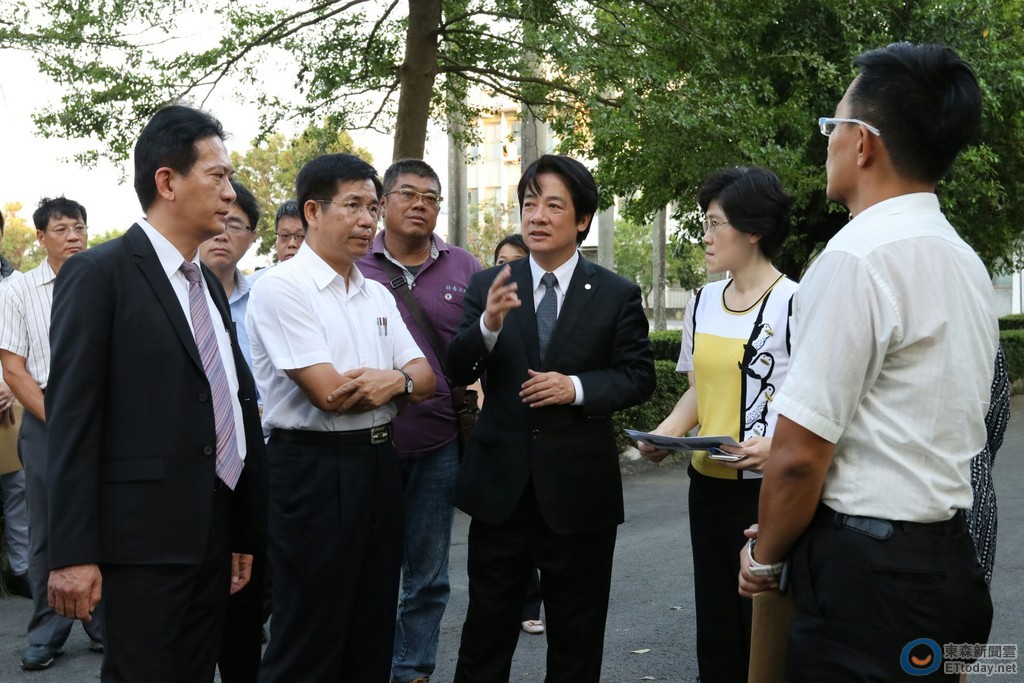 ▲教育部長潘文忠於3日由賴清德市長、李孟諺秘書長、教育局陳修平局長等人陪同,至立人國小、南寧高中勘查校園受災情形。(圖/市府提供)