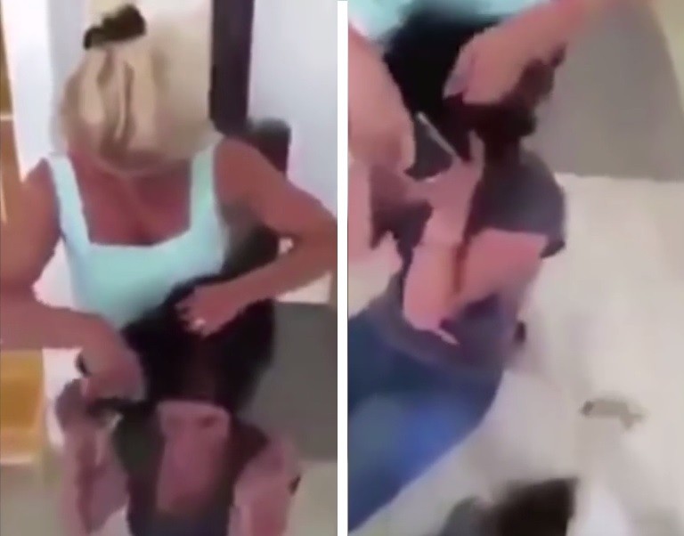 據影片標題顯示,女孩在學校霸凌癌症掉髮的學生,事後被母親發現,於是給她教訓;在影片中,母親站在女兒身後並抓住其頭髮,用電動剃刀狠狠地削下,可以清楚聽到哭喊聲,同時女孩也掩面哭泣,雖然不停掙扎,但剃刀仍是繼續推動。