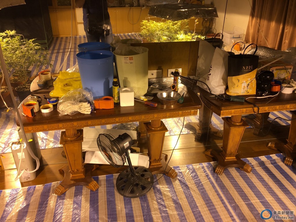 ▲鄭姓犯嫌從網路習得自栽大麻技術,正準備收成謀取暴利時,警方循線掩至將他逮捕,並查扣栽種設備和市價500萬的大麻成品與半成品。(圖/記者孫曜樟翻攝)