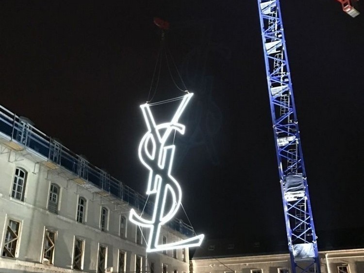 廢棄建築物前停靠的吊車上掛起了YSL字樣的霓虹燈,這樣的訊息是再清楚不過,新任設計師Anthony Vaccarello正在重新建構Yves Saint Laurent的王國。