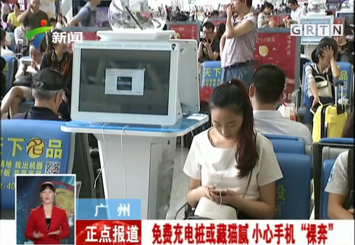 ▲免費充電站暗藏危機。(圖/翻攝自廣東電視台,下同。)