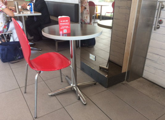 ▲肯德基超邊緣座位,引起網友們直呼:坐了就絕緣了啦。(圖/取自Dcard,下同)