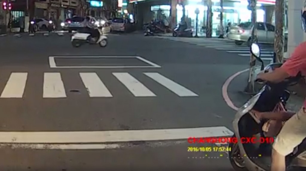 行車紀錄器畫面中,原PO駕車在停等紅燈時,右前方出現一對騎著機車的父女,父親不知何故,一停下來後就然直接揮手攻擊女童頭部,將她給巴下機車,原PO見狀後立刻出言勸阻「欸先生,你也別這樣打小孩」,而這位爸爸的火氣相當大,還回嗆「怎樣?這是我的小孩,關你什麼事?」女童隨後再次坐上機車,父女倆就這樣揚長而去。