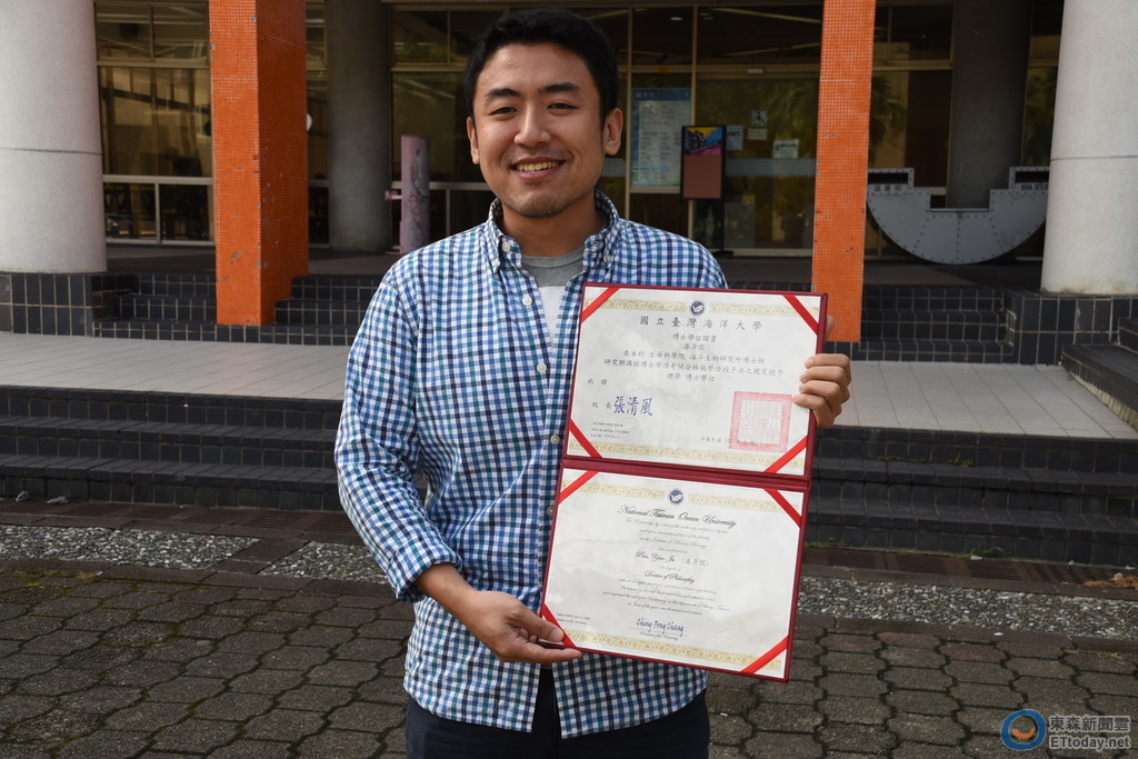 海洋大學海洋生物研究所博士班學生潘彥儒在4年內,取得海洋大學與法國里爾科技大學雙聯博士學位,成為海大創校以來第一位拿到台法雙學位的台灣學生。