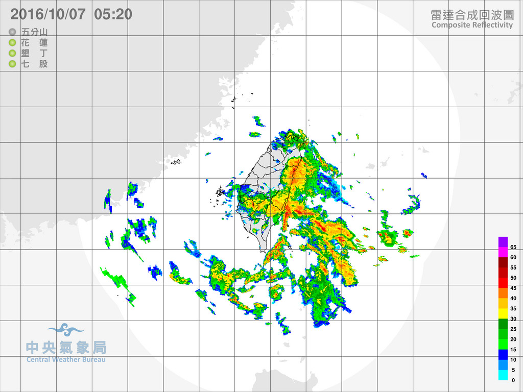 氣象局指出,今花蓮、台東及屏東山區有豪雨或大豪雨;宜蘭及恆春半島有大雨或豪雨;新北、基隆北海岸、屏東平地及高雄山區亦有局部大雨發生的機率,請注意坍方、落石、土石流及溪水暴漲、低窪地區請慎防淹水。
