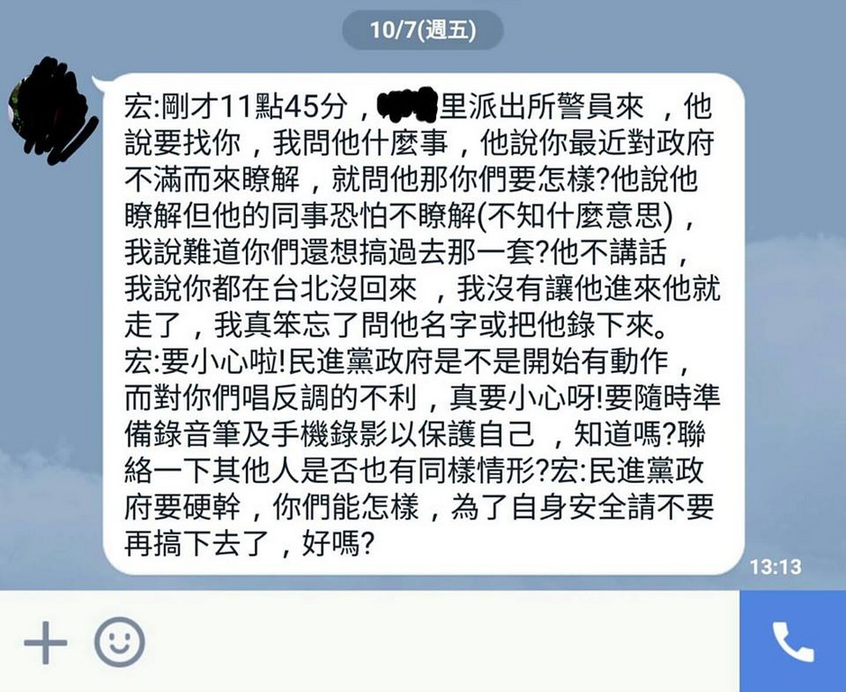 ▲工鬥成員痛批員警登門拜訪的行為。(圖/翻攝自2016工人鬥總統社團)