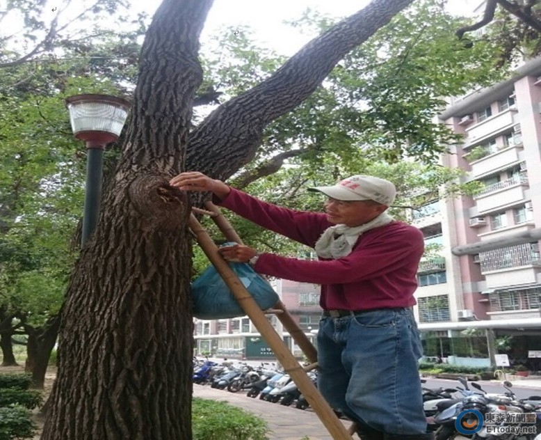 ▲「樹洞」雨後天然的登革熱孳生源,防疫人員以雜草或藻類塞滿避免孳生。(圖/衛生局提供)