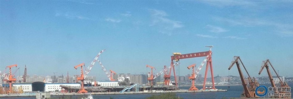中國首艘自製001A型航空母艦於大連完成艦島安裝,最快可在年底下水。大陸網站稍早曝光了建造的最新照片,可以看到在碼頭邊的覆蓋式廠房內建造的前部艦島結構有9層樓高,約長30公尺,艦島後部則有發動機進氣口和煙囪。