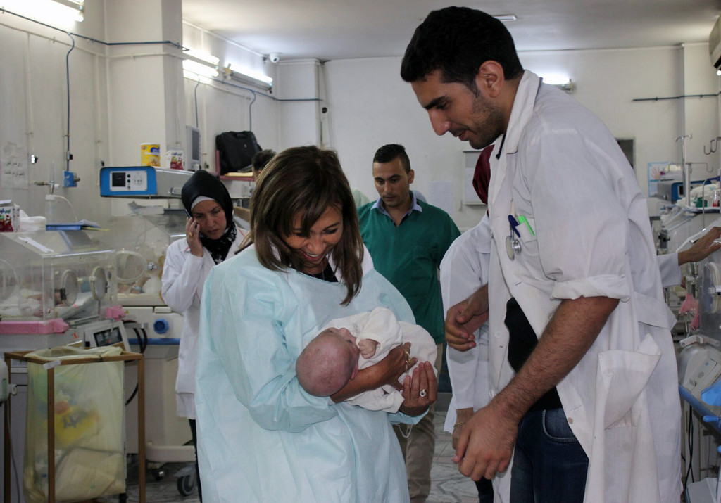 政府軍和反抗軍砲火不停,甚至狠心砲轟當地醫院,救援更加雪上加霜。兩個月大的梅絲(Mais)的胃部被繃帶緊緊的包著,天真的躺在嬰兒病床上傻笑,但其實她的母親不久前才企圖拿刀想要「解脫」母女二人,所幸送醫後均無大礙。可憐的梅絲住在阿勒坡,爸爸和2個哥哥都在戰火中身亡,媽媽因為再也承受不住生活、精神壓力,所以想帶著女兒自殺,希望一家人可以在另外一個「和平的世界」團聚。