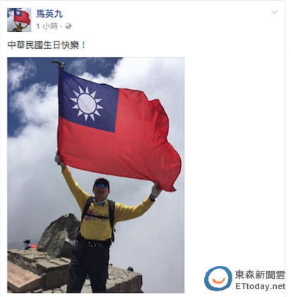 為了慶祝中華民國105歲生日,前總統馬英九10日上午在自己的臉書貼出先前登上玉山主峰時高舉國旗的照片,留言祝賀中華民國生日快樂。