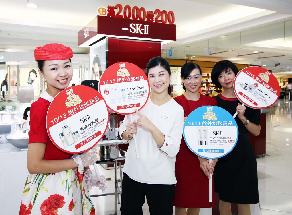 贈獎活動包含台南地區最低門檻的化妝品、內睡衣當日單筆滿2000送200、週年慶首6日(10/13-10/18)特別加碼持HAPPY GO卡於化妝品、內睡衣當日單筆滿8000再加送200,每日限200份;首12日(10/13-10/24)首次出現破天荒台南獨家全館(含小家電、健康按摩器材)當日累計滿5,000送600,與10/25-11/1期間全館(含小家電、健康按摩器材)當日累計滿5,000送500、周年慶期間大家電當日單櫃滿10,000現折1000,另外加碼22大銀行刷卡禮,當日刷滿6,000再送200。今年週年慶更推出汽車大抽獎,當日消費累計2,000元即可參加抽獎,有機會獲得LUXGEN 7 CEO 汽車2200cc乙部(價值90萬)。