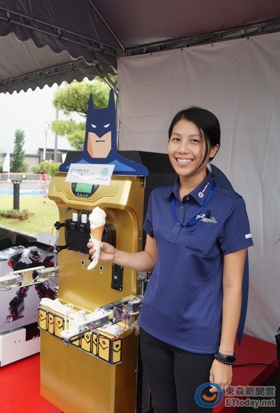 ▼想吃冰淇淋嗎?由祥儀蝙蝠俠機器人給您親自服務。(圖/記者楊淑媛攝)