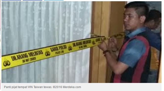 根據印尼《獨立報》(merdeka)報導,這名台灣人叫做Yi Chu Sheu,在當地的公司上班,與妻子住在南唐格朗縣(South Tangerang City)的錫朋(Serpong)。當地警方描述,他在10日下午2點多時,前往南唐格朗縣的按摩店,接受按摩師妮娜(Nina Saminah)90分鐘的按摩服務,於下午4點整結束後前往淋浴。