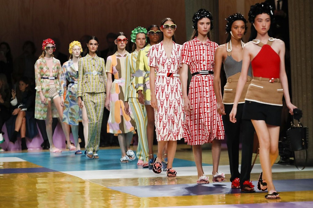 MIU MIU 2017春夏系列返回60年代展開一場春天粉嫩色系海灘派對,在奧古斯特佩雷特August Perret設計的巴黎耶納宮Palais d’Iena裡創造了一個人造夏日景觀秀場,舞台壁緣佈滿雲朵及太陽圖案、模特兒來回穿梭伴隨秀場音樂的海浪聲進入這個慵懶夏日假期。