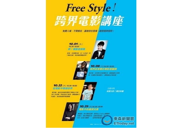 桃園光影電影館12日指出,該館自10月份起,舉辦多場不同形式的講座與課程,歡迎市民前來體驗不一樣的電影工作坊!「Free Style!跨界電影講座」,於 10月的每週六下午4點半開始,免費入場,不需報名,讓講者自在發揮、觀眾隨時發問,營造一個雙向溝通的講座形式。