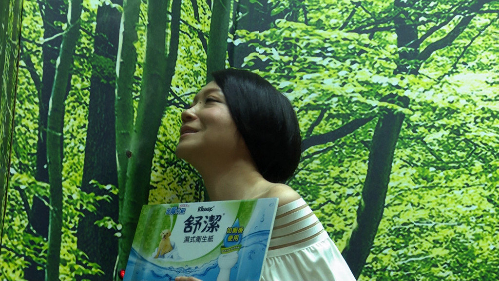 民眾走進一片綠意盎然的體驗區,彷彿置身在如森林般的美麗布景,接著馬上聞到濕式衛生紙中,添加的茶樹精華所散發出的清新香氣,讓人身心舒暢,最後來到馬桶體驗區,民眾只要對著馬桶大喊,心中的煩惱就能像用原生紙漿製作出的濕式衛生紙一樣,直接在馬桶裡分解掉。