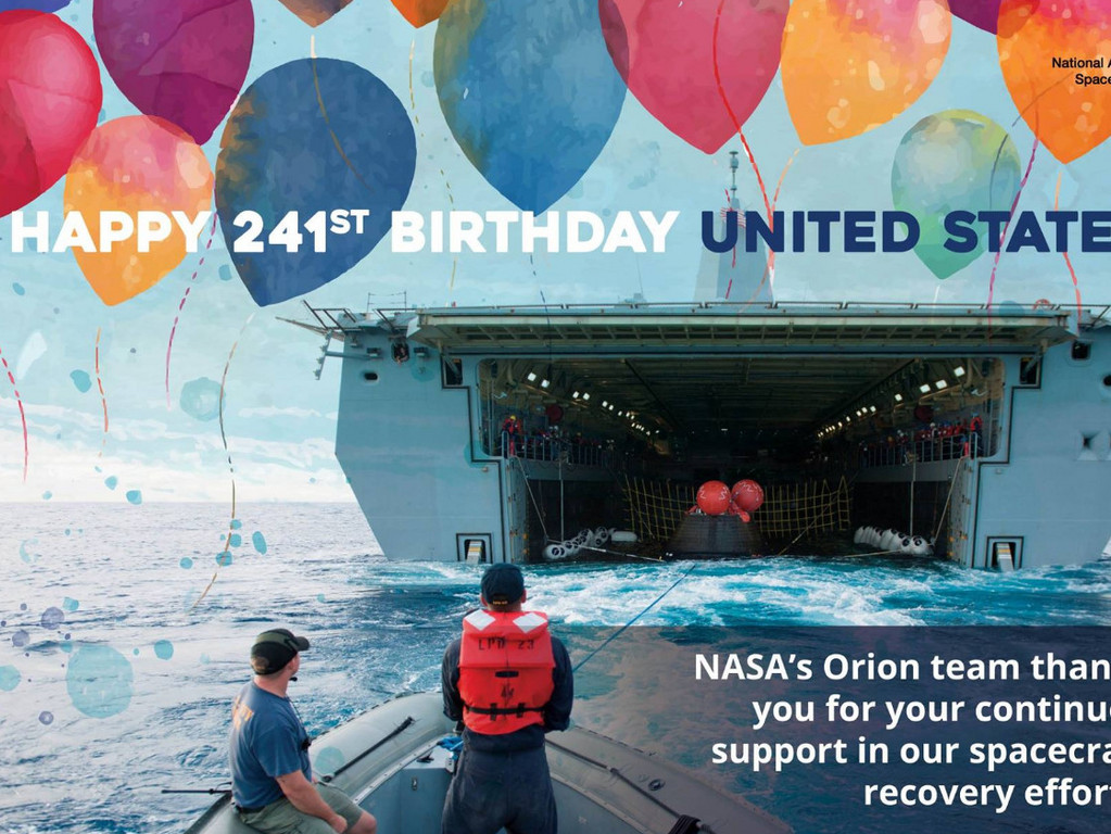 10月13日是美國海軍的生日,NASA在台灣時間凌晨0點,於NASA's Orion Spacecraft官方粉絲團上發出生日祝賀詞,原來是美國海軍今年241歲了,並感謝他們對NASA的付出及貢獻,因為每一次NASA宇航員的返航都跟海軍有關喔!請看以下報導。