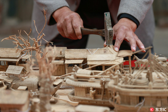 湖南省衡陽市年近70的退休工人馮樹元自學木雕,花12年在樟木板上雕出1座立體的《清明上河圖》,裡頭數百位人物神情各異、維妙維肖,還有近千物件羅列其上,而且全部都能拆卸組裝,精細程度讓人看得目瞪口呆。
