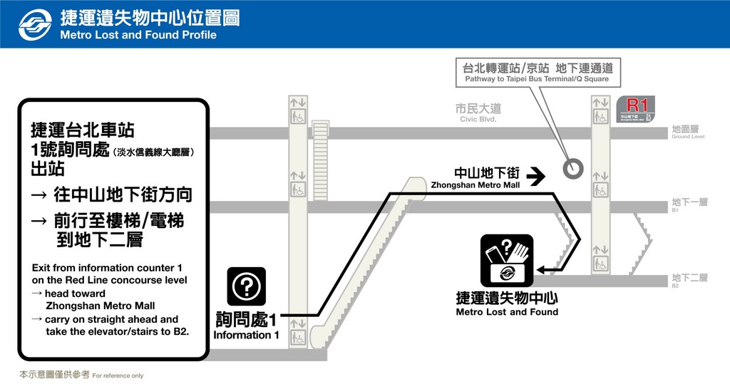 乘客注意了,台北捷運遺失物中心18日起搬家!北捷表示,為提供旅客更寬敞、更舒適的服務環境,台北捷運遺失物中心正式移至捷運臺北車站旁、中山地下街R1出口附近的地下2樓,服務電話改為(02)2511-0509(您物領走),因應更換專線電話號碼的過渡期,原服務電話仍會持續服務3個月。