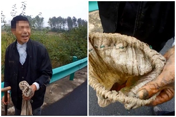 民警停車上前檢查得知,該名男子姓高,在這高速公路上準備到邊坡的排水溝裡去挖鱔魚。高男是附近漢川垌塚村的村民,上高速就是想來挖點鱔魚,一連挖了幾段排水溝後還真的有鱔魚,他還打開布袋給民警看。