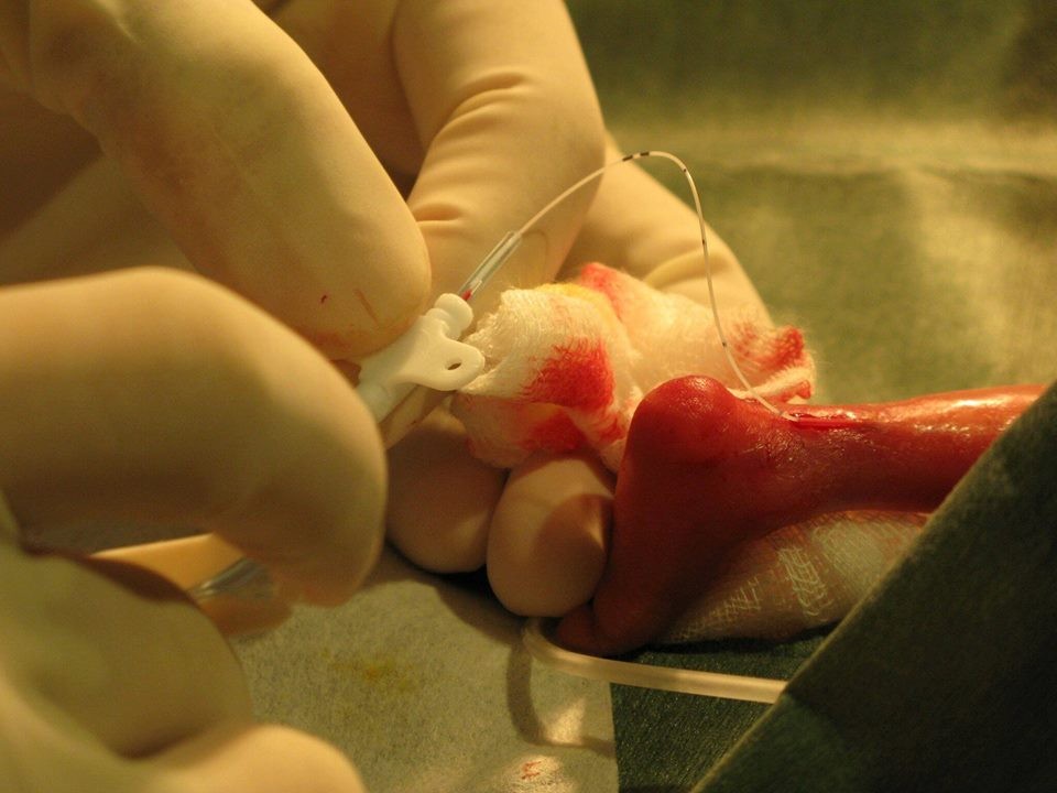 其中,一位轉診來成大的試管嬰兒只有22週大,重560克的巴掌仙子,小腳兒只有大拇指指節這麼大,一般的導管太粗不適用。剛好有廠商提供了新的導管,讓林永傑雀躍不已,一次採購了5盒,但後續卻因為許可證不符合,院內不再採購「黑貨」。