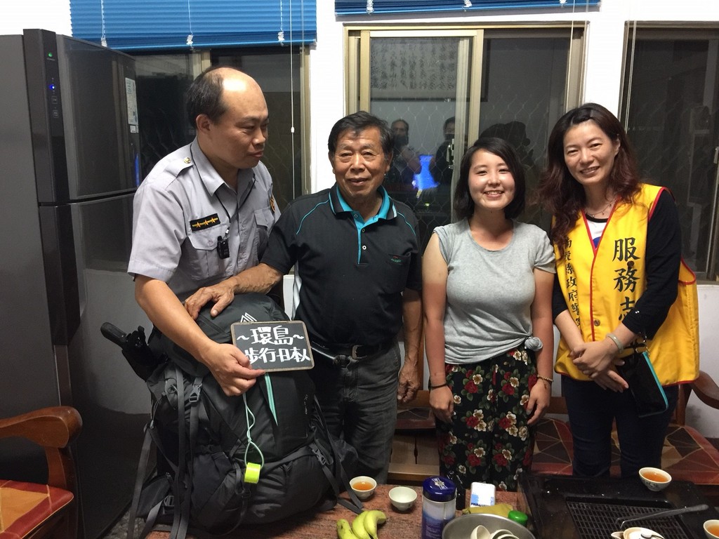 來自日本川崎市的28歲女背包客伊藤千明,日前獨自來台徒步壯遊2個月,17日晚間6時許她求助草屯分局雙冬派出所,詢問借住寺廟的處所,但因為該廟宇正在整修,且也沒有房間,於是員警先準備熱食、茶水,接著商請警志工陳小姐提供住宿盥洗,讓她深感台灣人的熱情協助,感動道別後繼續下一站旅程。