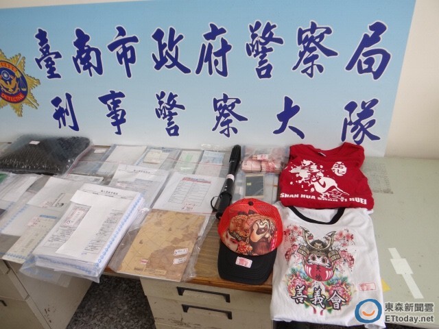 ▲台南市警方宣布破獲以「天地會」為名之犯罪組織,緝獲林姓男子等10人,起獲罪證一批。(圖/警方提供)