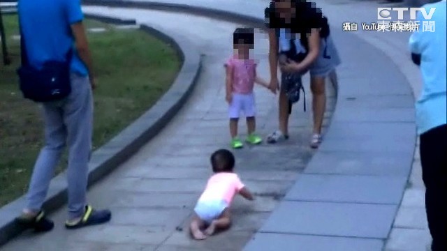新竹有民眾在公園看到一名小嬰兒在石板路上爬行,但沒有穿護膝,痛得讓哇哇大哭,但一名女子卻要他繼續往前爬,有人上前制止,與女子同行的男子說,他們是托嬰中心人員,讓嬰兒在地上爬行是家長同意的。
