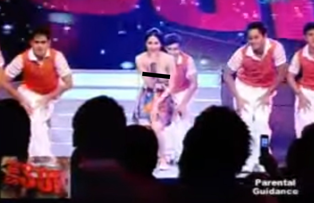 女明星最大的惡夢!菲律賓演員瑪麗安里薇拉(Marian Rivera)在電視節目SOP上表演歌舞,沒想到動作太激烈,不小心讓「長輩」跑出來,隨後才趕緊拉上。但是,這一幕已經透過電視撥出,現場更有許多小朋友目睹全程。