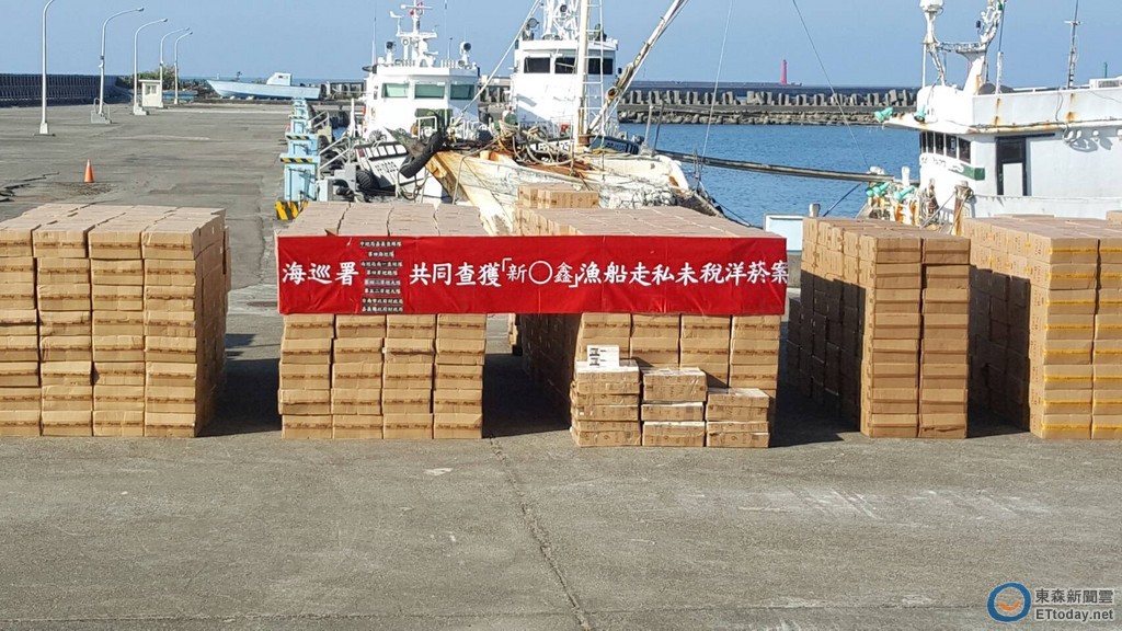 台南海巡隊、嘉義機動查緝隊等單位,24日宣布偵破「新海鑫號」漁船涉嫌走私私菸案,起獲近1500箱「白牌」私菸,市價約5千多萬元,緝獲董姓船長及船員共4人,全案偵訊後依《菸酒管理法》函送法辦,並持續追查未稅菸上、下游不法供應鏈中。