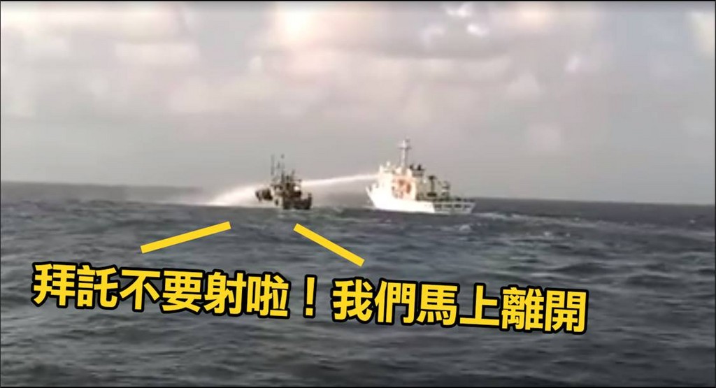 ▲漁船被水砲射得求饒。(圖/翻攝自爆料公社)