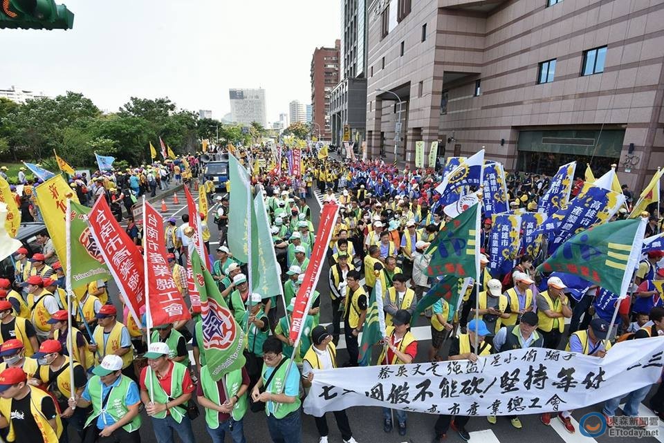 ▲123大聯盟千人走上街頭,抗議蔡英文政府砍7天假。(圖/記者李毓康攝)