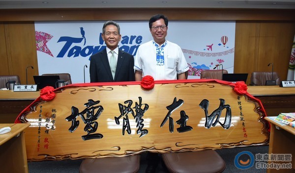 ▲協助桃園市府發展體育活動,葉政彥(左)獲頒「功在體壇」木匾。(圖/桃園市政府提供)