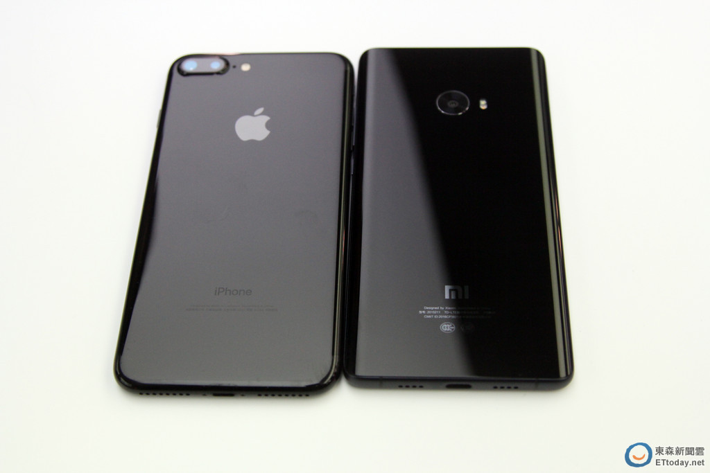 ▲▼iPhone 7 Plus 曜石黑與小米Note 2外觀比一比。(圖/記者洪聖壹攝)