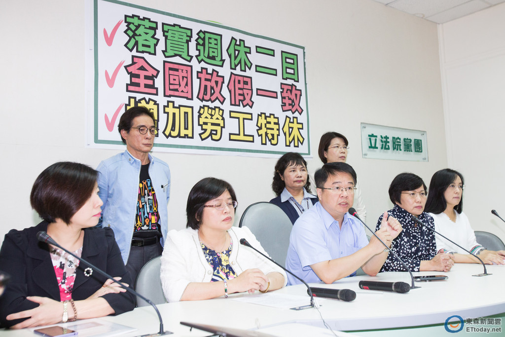 他強調,民進黨的修法版本有三大重點,一、落實週休二日,二、全國放假一致,三、讓勞工增加特休假。「我們的修法絕對比原本的勞基法進步」,雖然無法讓所有人滿意,但如果在野黨繼續杯葛,勞工休假、企業排假都無法進行。