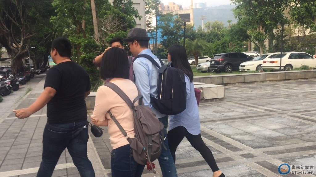 ▲鄭家堯一行人從後門離去。(圖/記者張曼蘋攝)